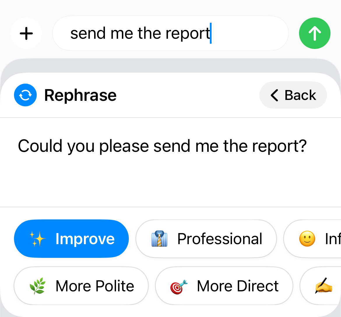 "Saves me in emails with professors. The 'Formal' tone feature is simply irreplaceable for university. I even improved my German by seeing correct phrasings."